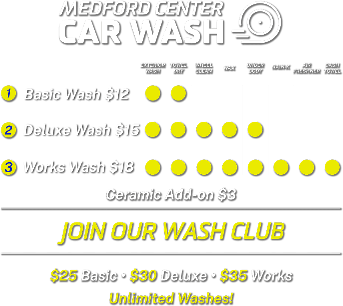 Medford Center Car Wash delivers thorough, high-quality cleaning for your vehicle. Every wash includes a FREE towel dry to ensure a spotless, streak-free finish. Fast, friendly, and reliable – stop by today and experience the best car wash in Medford.